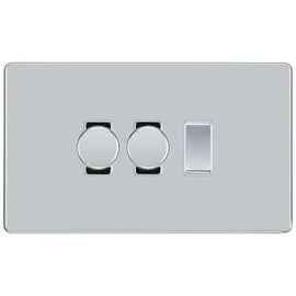 BG Screwless Polished Chrome 3 Gang Switch 2x Trailing Edge LED Dimmer 1x Intermediate Custom Grid Switch Please note that this switch will come in a grid format. You will be sent the following parts all supplied by BG; R...
