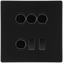 BG Screwless Matt Black 6 Gang Switch 3x Trailing Edge LED Dimmer 3x Intermediate Custom Grid Switch