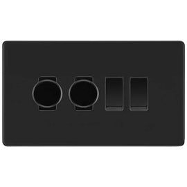 BG Screwless Matt Black 4 Gang Switch 2x Trailing Edge LED Dimmer 2x Intermediate Custom Grid Switch