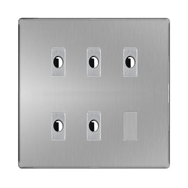 BG Nexus Screwless Brushed Steel 5 Gang Flex Outlet Socket