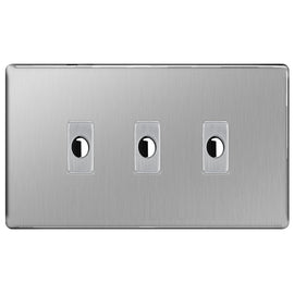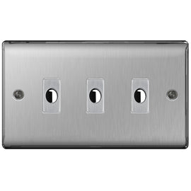 BG Nexus Screwless Brushed Steel 3 Gang Flex Outlet Socket