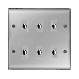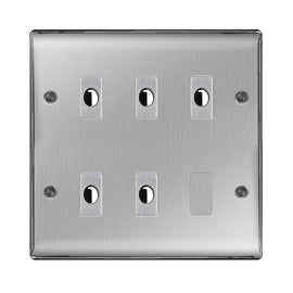 BG Nexus Screwless Brushed Steel 6 Gang Flex Outlet Socket