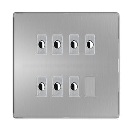 BG Nexus Screwless Brushed Steel 8 Gang Flex Outlet Socket