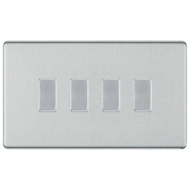 BG Brushed Steel Screwless 4 Gang Intermediate Custom Grid Light Switch