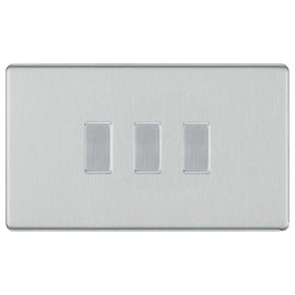 BG Brushed Steel Screwless Flatplate 3 Gang Intermediate Switch in Double Format Custom Grid