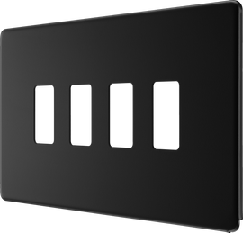 BG RFFB4 Screwless Matt Black Steel 4 Gang Front Cover Plate