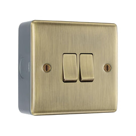 Nexus Metal Antique Brass Double 10A 10AX 2 Way Plate Switch About Product: Top quality Antique Brass finish - lightly lacquered to prevent finger marks Matching Antique Brass rocker switch No visible plastic around switc...