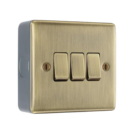 BG NAB43 Nexus Metal | Antique Brass | 3 Gang 20A 16AX 2 Way Plate Switch About Product: Top quality Antique Brass finish - lightly lacquered to prevent finger marks Matching Antique Brass rocker switch No visible plasti...