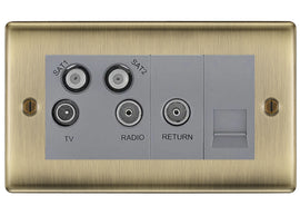 BG Nexus Metal Antique Brass Quadplex Combination TV Socket NAB69G