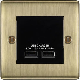 BG Nexus Metal Antique Brass Dual USB Charger 3.1A Output Socket - Black Insert