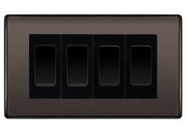 BG Nexus Black Nickel 4-Gang Light Switch 1x 2-Way + 3x Intermediate – Black Inserts