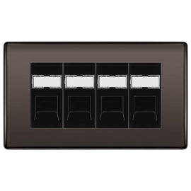 BG Nexus Black Nickel 4 Gang RJ45 Cat5e Data Socket Black Inserts