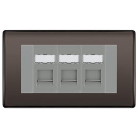 BG Nexus Black Nickel 3 Gang RJ45 CAT6 Data Socket Grey Inserts