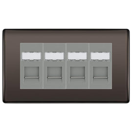 BG Nexus Black Nickel 4 Gang RJ45 Cat6e Data Socket Grey Inserts