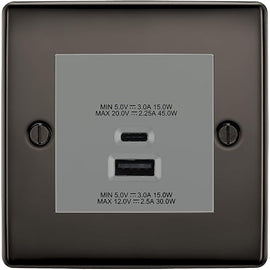 BG Nexus Black Nickel 45W USB Wall Socket Euro Module USB-A & C - Grey Insert