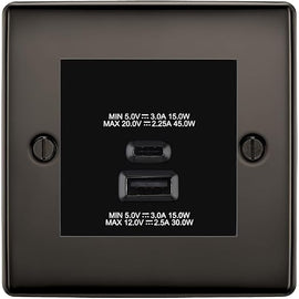 BG Nexus Black Nickel 45W USB Wall Socket Euro Module USB-A & C - Black Insert