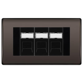 BG Nexus Black Nickel 3 Gang RJ45 Cat5e Data Socket Black Inserts