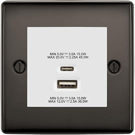 BG Nexus Black Nickel 45W USB Wall Socket Euro Module USB-A & C - White Insert