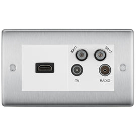 BG Nexus Brushed Steel 4G Faceplate with HDMI + TV/FM/SAT Module - White Insert