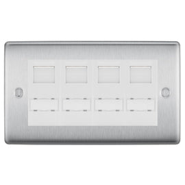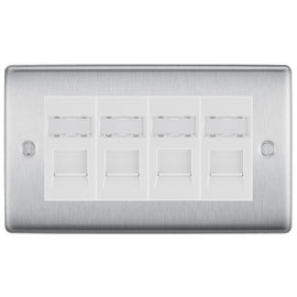 BG Nexus Brushed Steel 4 Gang RJ45 CAT6 Data Socket White Inserts