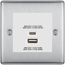 BG Nexus Brushed Steel 45W USB Wall Socket Euro Module USB-A & C - White Insert