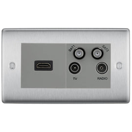 BG Nexus Brushed Steel 4G Faceplate with HDMI + TV/FM/SAT Module - Grey Insert