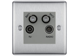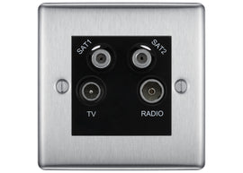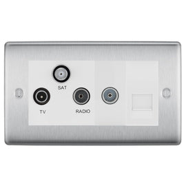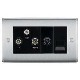 BG Nexus Metal Brushed Steel Quadplex Combination TV Socket NBS69W
