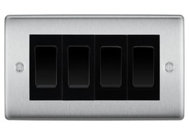 BG Nexus Brushed Steel 4 Gang 20AX 2-Way Switch Custom Grid - Black Insert
