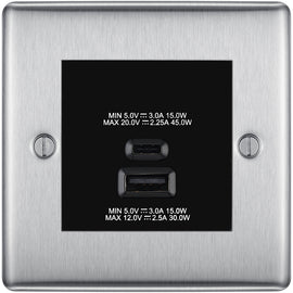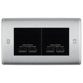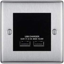 BG Nexus Metal Brushed Steel Dual USB Charger 3.1A Output Socket - Black Insert