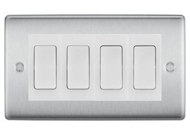 BG Nexus Brushed Steel 4 Gang Intermediate Light Switch Custom Grid - White Insert