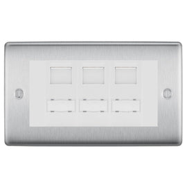 BG Nexus Brushed Steel 3 Gang RJ45 CAT6 Data Socket White Inserts