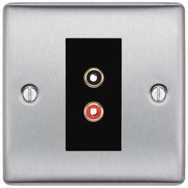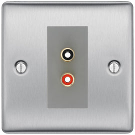 BG Nexus Brushed Steel Euro Module RCA X 2 Outlet NBSRCA2B