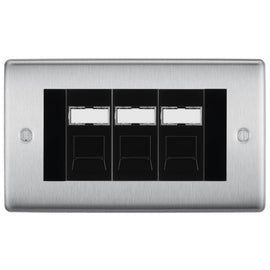 BG Nexus Brushed Steel 3 Gang RJ45 Cat5e Data Socket Black Inserts