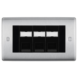 BG Nexus Brushed Steel 3 Gang RJ45 Cat6 Data Socket Outlet Black Inserts