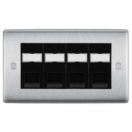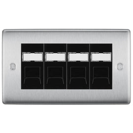 BG Nexus Brushed Steel 4 Gang RJ45 Cat5e Data Socket Black Inserts