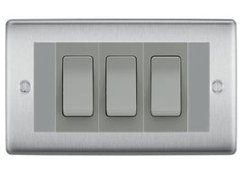 BG Nexus Brushed Steel 3G Switch 1x Intermediate 2x 2 Way Switch - Grey Insert