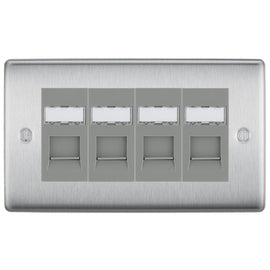 BG Nexus Brushed Steel 4 Gang RJ45 CAT6 Data Socket Grey Inserts