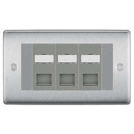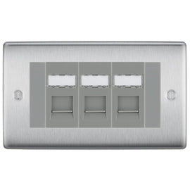 BG Nexus Brushed Steel 3 Gang RJ45 CAT6 Data Socket Grey Inserts