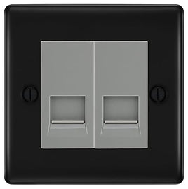 BG Nexus Matt Black Double RJ11 Telephone Socket NFBRJ112 - Grey Insert