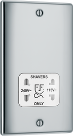 Nexus Metal Polished Chrome 115-230V Dual Voltage Shaver Socket - White Insert About Product: Top quality Polished Chrome finish - lightly lacquered to prevent finger marks White plastic insert Specification: 115/230V dua...