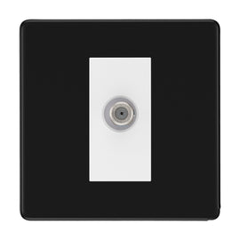 BG Screwless Matt Black Co-axial Socket FFB60W Coaxial Socket Integral Gasket for Moisture Protection Minimum Mounting Box Depth 25mm Dimensions - 88 x 88 x 3mm Matt Black with White Inserts Material: Premium Grade Stee...