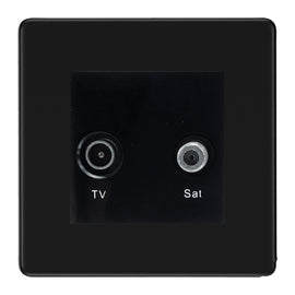 BG Flatplate Screwless Matt Black TV & Satellite Socket FFB65G TV & Satellite Socket Integral Gasket for Moisture Protection Constructed from a 2G Euro Plate and SAT & TV Module Dimensions - 88 x 88 x 3mm Pla...