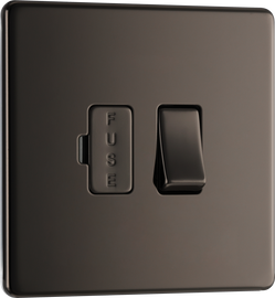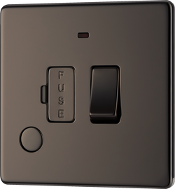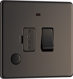 Switched Fused Spur Unit 13A with Neon - Black Nickel About Product: No visible plastic around switches Screwless front secure & easy "clip on/off" plate Sleek flat profile Minimum back box depth: 35mm Integral gask...