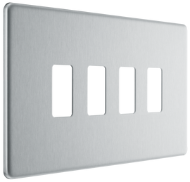 Screwless Front Plate for 4 Modules - Brushed Steel About Product: 4 Gang front plate Brushed Steel finish Designed to match the Nexus Brushed Steel Screwless Flate Plate range No visible plastic around rockers Clip on/...