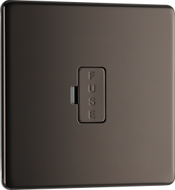 Unswitched Fused Spur Unit 13A - Black Nickel About Product: No visible plastic around switches Screwless front secure & easy "clip on/off" plate Sleek flat profile Minimum back box depth: 35mm Integral gasket for m...