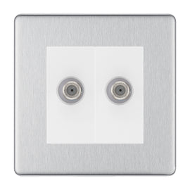BG Screwless Brushed Steel Double Satellite Socket FBS642G