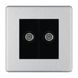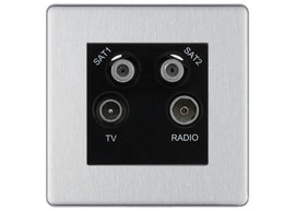 BG Screwless Brushed Steel TV/FM/2x SAT Quadplex Socket – Black Insert