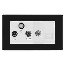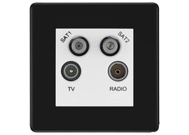 BG Screwless Matt Black TV/FM/2x SAT Quadplex Socket – White Insert