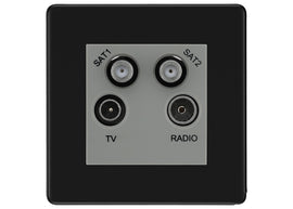BG Screwless Matt black TV/FM/2x SAT Quadplex Socket – Grey Insert