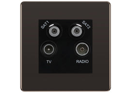 BG Screwless Black Nickel TV/FM/2x SAT Quadplex Socket – Black Insert